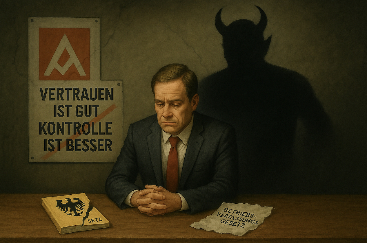 Etwaige Ähnlichkeiten mit realen Vorgängen oder Personen sind nicht beabsichtigt. Es handelt sich um eine freie Meinungsäußerung im Sinne von Art. 5 Abs. 1 Grundgesetz, die dem demokratischen Diskurs dient. Der Beitrag enthält keine Tatsachenbehauptungen über identifizierbare Personen, sondern wertende Einschätzungen und Kritik an allgemeinen Entwicklungen im Bereich betrieblicher Mitbestimmung.